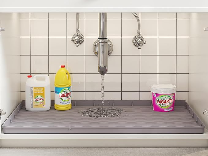 Under Sink Mat for Kitchen Waterproof, 34" × 22" Silicone Bathroom Sink Mat, Under Sink Liner Drip Tray and Protectors for Bottom of kitchen Sink, Fits 36'' Stand Cabinets (Grey)