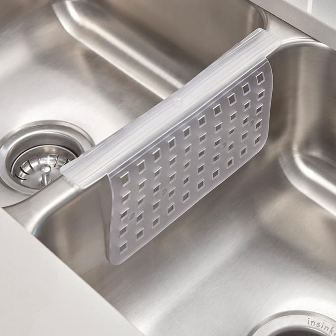 SINK PROTECTORS FOR KITCHEN SINK – Protect your dishes and your sink from damage when washing and drying with the iDesign Kitchen Sink Protector; ideal for use in kitchen, bathroom, and laundry room sinks OPEN DESIGN – The elegant grid design of the plastic sink saddle avoids water from being trapped between the kitchen sink mat and the sink divider wall STAYS IN PLACE – Features sturdy, easy to apply suction cups that stick to the sink wall avoids the sink grid from sliding around DURABLE – Crafted from a strong plastic construction, the sink protector mat is designed to withstand years of use IDEAL SIZE – The kitchen sink grid measures 11” x 12” and fits over most sink dividers