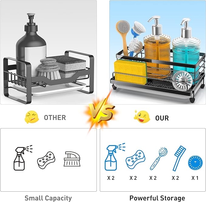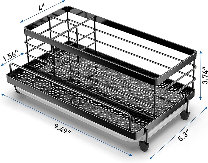 【MORE STORAGE SPACE 】Compared to other kitchen sink caddy CISILY sponge holder expands to 5.3 inches wide and 9.49 inches long, enhancing its kitchen organization function, and allowing flexible placement of sponges, dish soap, soap dispensers, brushes, sink plugs and more. Make the most of every inch of space and make your kitchen look cleaner. 【REASONABLE DIVIDER DESIGN】 The sponge holder for kitchen sink ergonomic divider design allows it to have 4 separate storage spaces, Different items are placed in different areas, so as to achieve a well-organized effect, so that your counter is no longer cluttered. 【KEEP DRY】The sponge holder features an elegant petal pattern cutout design and sturdy stain-resistant tray to keep it looking good. The hollow bottom design increases drainage speed, the drip tray collects excess water, keeps the sink rack and countertop dry. 【ANTI-RUST STURDY MATERIAL】: We chose a stainless steel material more suitable for kitchen sinks to make the sink caddy and added sandblasting technology to the surface for secondary protection. This improves the corrosion and scratch resistance of the sponge holder, which will still look new after long-term use. 【SATISFACTION GUARANTEED】: The CISILY kitchen sink organizer is ready to use upon receipt, no installation required and is widely used on counters or bathrooms, making it a satisfying gift. If you have any questions during use, please consult our customer service staff. We want to provide you with a pleasant shopping experience.(USPTO patent pending)